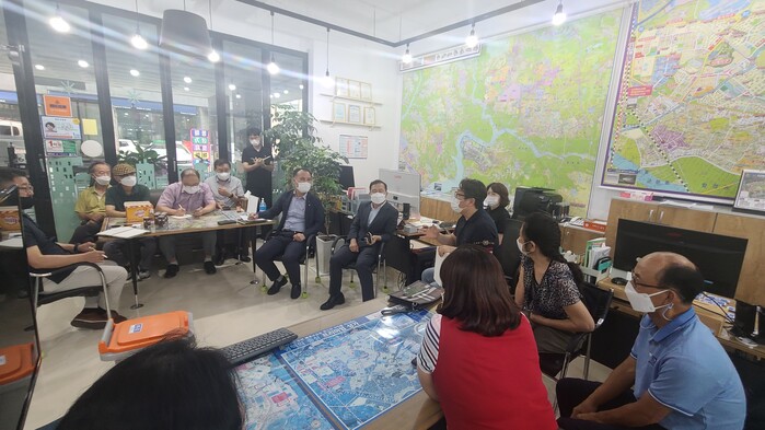 평택시(시장 정장선)는 지난 19일 비전동 소사벌카페거리 상인회 사무실에서 환경국장을 비롯한 시 관계자, 상인회 등 20여 명이 참석한 가운데 중심상업지역(소사벌 카페거리) 문전수거 시범운영을 위한 주민 간담회를 개최했다.