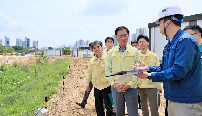 정장선 평택시장은 21일 여름철 자연재난 대비 중부권버스차고지 공사현장에 방문하여 침수방지 추진대책 점검에 나섰다.