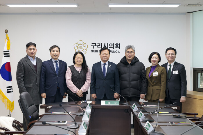 구리시의회(의장 신동화)는 2월 2일 14시 의장실에서 구리시기동순찰대(연합대장 김봉수)와 간담회를 개최하였다. 이날 간담회에는 신동화 의장, 김성태 부의장, 정은철 운영위원장, 권봉수 의원, 양경애 의원과 기동순찰대 대원 등 7명이 참석했다.