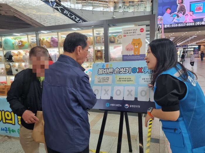 수원시보건소는 ‘세계 손씻기의 날’(10월 15일)을 맞아 15일 수원역 2층 대합실에서 감염병 예방 캠페인을 펼쳤다.