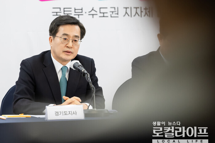 | ▲ 김동연 경기도지사가 ‘수도권 대중교통 요금 지원정책 발표’ 관련 국토부·수도권 지자체 합동 기자설명회에 참석하고 있다. (사진출처=김동연 페이스북) |