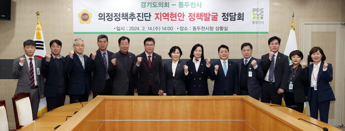 경기도의회(의장 염종현) 의정정책추진단은 14일 동두천시에서 ‘지역 현안 정책발굴 정담회’를 열고 동두천지역 정책 현안과 도의회 차원의 지원 방안을 논의했다.