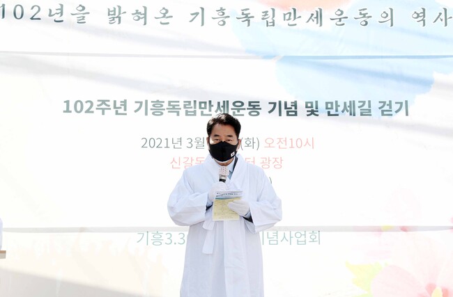 행사는 헌화 및 묵념, 독립선언서 낭독, 만세운동 퍼포먼스 영상 상영, 기흥 만세길 걷기 순으로 진행됐다.