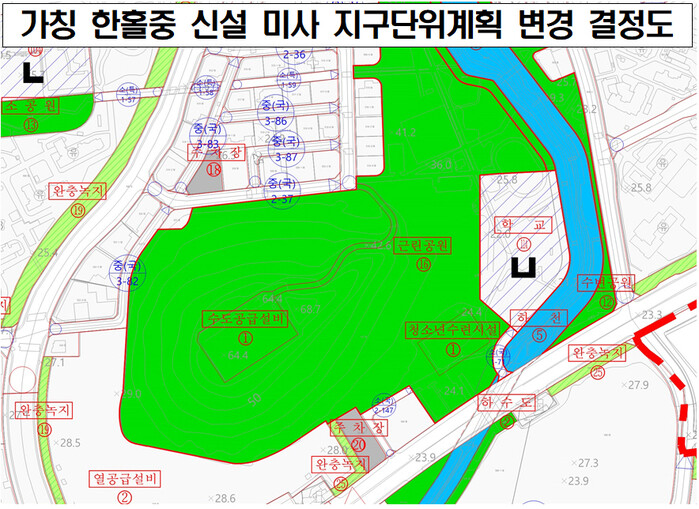 이번 지구단위계획 변경 고시는 지난 4월 28일 교육부와 행정안전부가 공동으로 심의한 공동투자심사에서 가칭 한홀중 신설계획이 확정되고, 한강유역환경청과 환경보전방안협의가 마무리 됨에 따른 후속조치다.
