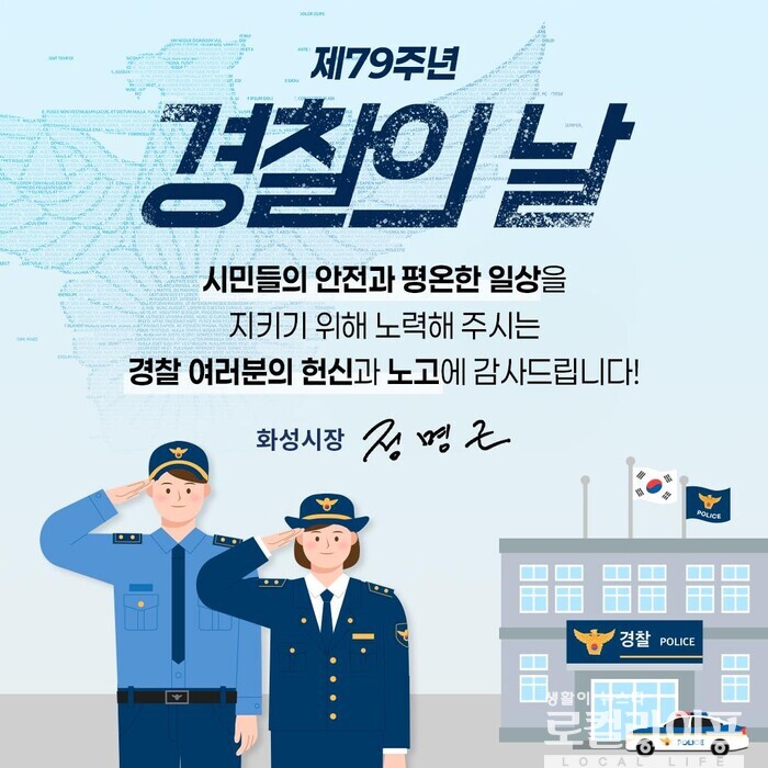 [화성=로컬라이프] 송준형 기자 = 정명근 화성시장이 ‘경찰의 날’을 맞아 축하 인사를 전했다.
