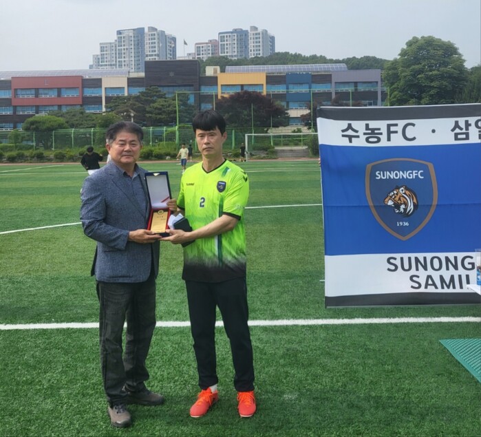 수원특례시의회 정영모 의원(국민의힘, 영화.조원1.연무동)은 25일 수원농생명과학고등학교에서 지역주민 건강증진에 기여한 공로를 인정받아 수농축구회 회원들로부터 감사패를 수여 받았다.
