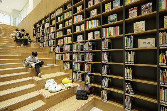 2층은 어린이·유아자료실을 중심으로 구성돼 아동 도서가 구비돼 있다. 또한, ▲5면 3D와 터치센서를 활용한 체험형 동화구연실 ▲미디어 아트존 ▲인터렉티브 월 ▲핑거스토리(AR북) 등 아이들의 호기심을 자극하는 감각적이고 체험 중심의 콘텐츠가 마련돼 있다.