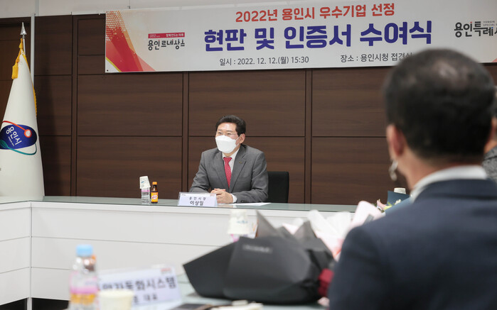 용인특례시(시장 이상일)는 12일 시청 접견실에서 올해 지역 경제 발전에 앞장서 온 6개 중소기업에 '용인시 우수기업' 인증서와 현판을 전달했다고 밝혔다.