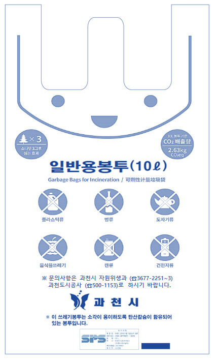 한편, 과천시는 지난해 11월 경기 성남시와 ‘종량제봉투 디자인권 통상실시권 무상 제공 계약’을 체결하고, 올해 상반기부터 변경된 디자인의 종량제봉투 제작에 착수한 바 있다.