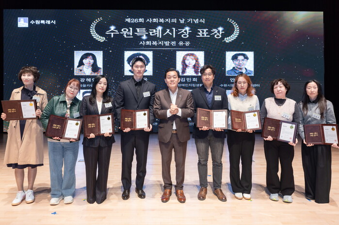 수원특례시(시장 이재준)는 4일 빛누리아트홀에서 제26회 사회복지의 날 기념행사 ‘모두의 빛 하나의 수원’을 열고, 사회복지 종사자들을 격려했다.
