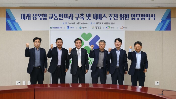 수원시와 원주·익산·천안·화성시 등 5개 지자체, 한국도로교통공단, 민간 내비게이션 업체는 16일 한국도로교통공단 대회의실에서 업무협약을 체결하고, 협력을 약속했다.