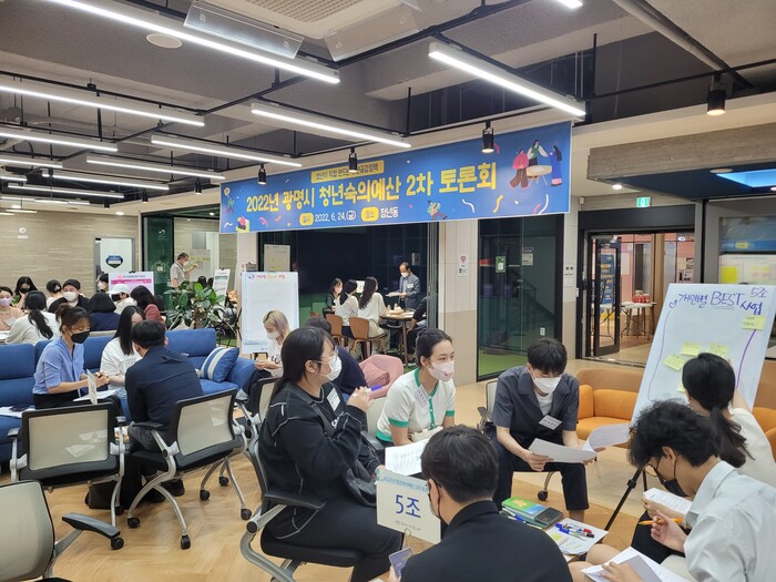 광명시(시장 박승원)는 24일 청년동에서 지역 청년 100명과 함께 50억 규모의 ‘청년숙의예산 2차 토론회’를 가졌다.