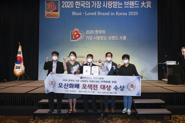 [오산=로컬라이프] 송준형 기자 = 오산시(시장 곽상욱)의 지역화폐「오색전」이 4일 서울 힐튼호텔에서 개최된‘제10회 2020 한국의 가장 사랑받는 브랜드대상’(조선비즈 주최) 시상식에서 지역화폐 부문 ‘대상’을 수상했다.