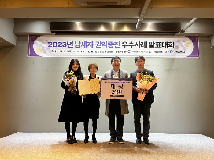 수원시가 ‘2023년 납세자 권익증진 우수사례 발표대회’에서 대상을 받았다. 부상으로 특별교부세 2억 원을 확보했다.