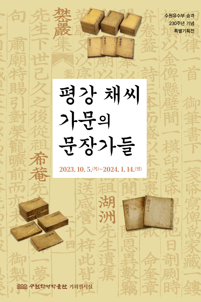 수원화성박물관은 5일부터 내년 1월 14일까지 수원유수부 승격 230주년 특별기획전 ‘평강 채씨 가문의 문장가들’을 개최한다.