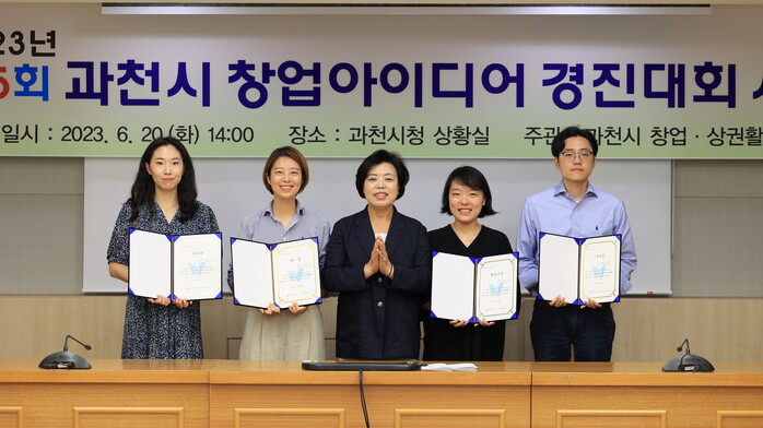 과천시가 기업가 정신을 갖춘 준비된 창업가형 인재 발굴 및 육성을 위해 20일 시청 상황실에서 ‘제5회 창업아이디어 경진대회 시상식’을 열고 우수한 창업아이디어를 선보인 4개 팀에 대해 시상을 했다.