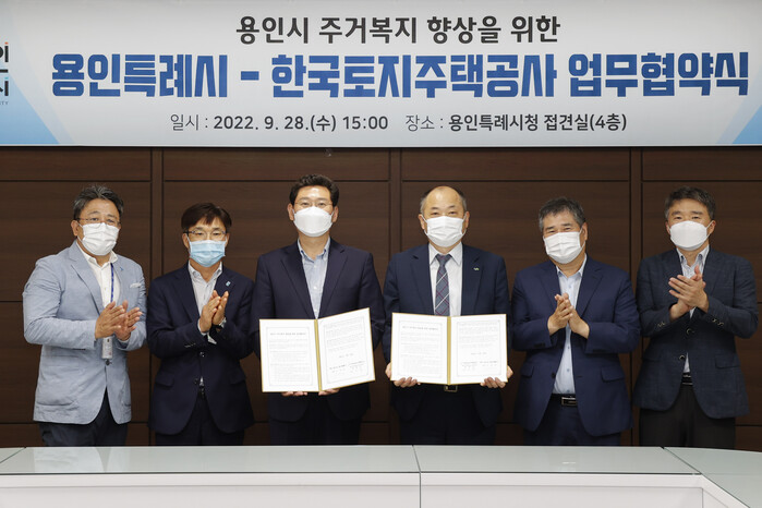 용인특례시(시장 이상일)가 시민들의 주거 안정을 위해 한국토지주택공사(LH) 경기지역본부와 ‘주거복지 향상을 위한 업무 협약’을 맺었다고 28일 밝혔다.