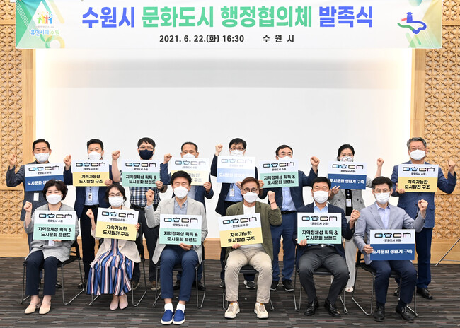 사진/ ‘수원시 문화도시 행정협의체’ 발족식에서 관계자들이 함께하고 있다.(사진제공=수원시)