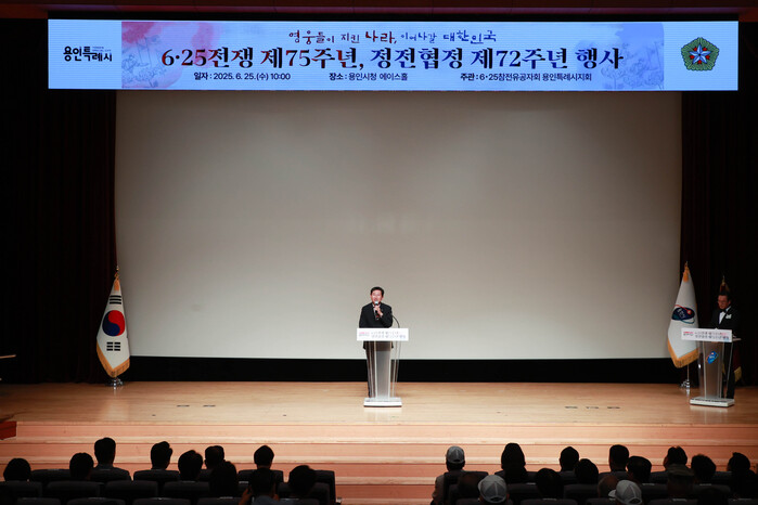 용인특례시(시장 이상일)는 25일 시청 에이스홀에서 ‘6·25전쟁 제75주년 및 정전협정 제72주년 행사’를 개최했다.