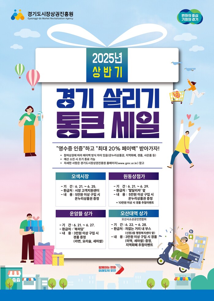 이권재 오산시장은 “최근 물가 상승과 경기침체로 모두가 어려움을 겪는 시기인 만큼, 이번 행사가 소상공인과 시민 모두에게 실질적인 도움이 되길 바란다”며 “앞으로도 지역경제에 활력을 불어넣는 다양한 정책을 지속 추진하겠다”고 말했다.