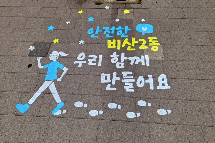 고보조명에는 아이들이 친근감을 느낄 수 있도록 밝은 이미지의 디자인과 함께 ‘안전한 비산2동 우리 함께 만들어요’, ‘밤길 안심하세요’ 등 안전을 강조하는 문구를 넣었다.
