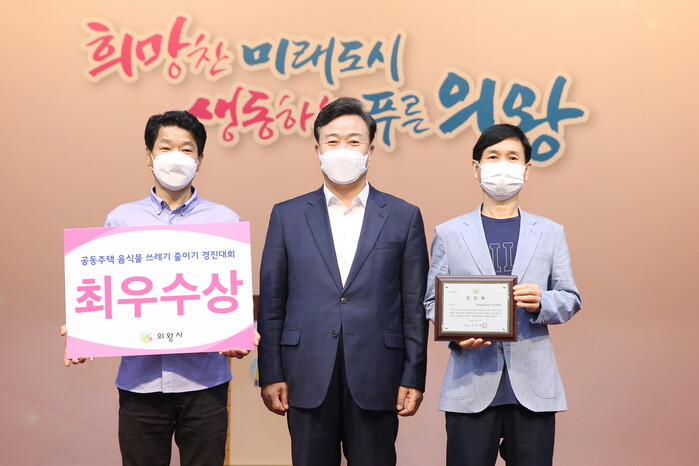 의왕시는 2022년도 상반기 공동주택 대상 음식물쓰레기 줄이기 경진대회에서 우수한 성적을 거둔 공동주택 4곳에 대한 시상식을 1일 시청 대회의실에서 진행했다.