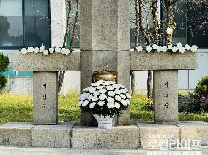| ▲ 덕수상고에 있는 최정수·김재준 열사 위령탑. (사진출처=김동연 페이스북) |