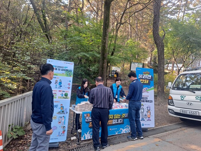 권선구보건소 직원들은 등산객과 주민들에게 진드기 감염병 주요 임상 증상과 대처 요령이 담긴 홍보물을 배부하고, 야외활동 시 예방수칙과 올바른 진드기 기피제 사용법을 안내했다.