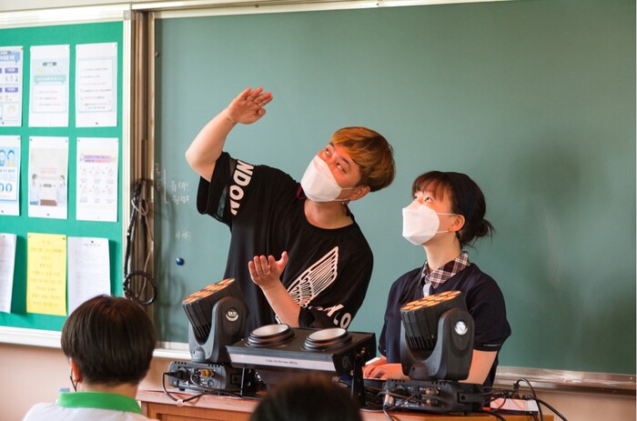 2022년 ‘뮤지컬 라이프’수업은 특별히 조명 실습과 무대 분장 수업에 학생들의 만족도가 높게 나타나고 있다. 무대 조명의 종류와 특징을 이론으로만 배우는 것이 아니라 뮤지컬 무대에서 사용하고 있는 조명 장비를 직접 학교로 가져와서 학생들이 조작법을 배우고 직접 조명 디자인을 실습하면서 예술창작과 문화기술을 동시에 탐구하고 실현해 볼 수 있는 프로그램을 진행하고 있다. 조명 실습 프로그램은 애초에 중학생들을 위한 과정이었으나 초등학생들의 관심과 참여가 높아서 지금은 초등학교 3학년 학생들도 직접 조명 콘솔을 조작하여 무빙라이트를 자신이 원하는 방향과 색으로 디자인하는 수업을 진행하고 있다. 모든 학생이 무대 조명을 디자인해 볼 있도록 수업을 진행하고 있지만 추가로 체험하기를 원하는 학생들이 많아 2시간의 수업시간도 부족해서 쉬는 시간까지 수업을 진행해야 할 정도로 인기가 많다.