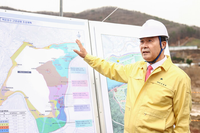 백운호수공원 조성사업(1구역)은 학의동 383번지 일원 130,901㎡ 부지에 다목적 잔디광장, 수변무대, 테마식물원, 생태숲, 파크골프장, 파고라 등 다양한 여가 및 체육시설과 체험공간을 조성하는 사업이다.