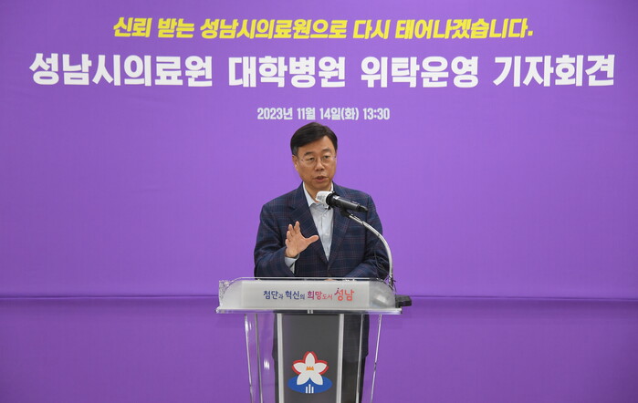 [로컬라이프] 신상진 성남시장은 14일 시청 한누리실에서 기자회견을 갖고 성남시의료원 대학병원 위탁운영 방침을 공식화했다.