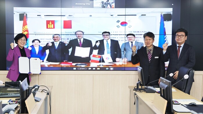코로나19 재확산 분위기 속에서 비대면 화상회의를 통해 진행된 이날 업무협약 체결식에는 김보라 안성시장과 출룬 치메드 오브스 주지사, 주한 몽골대사관 노무관 등 8명이 참석했다.