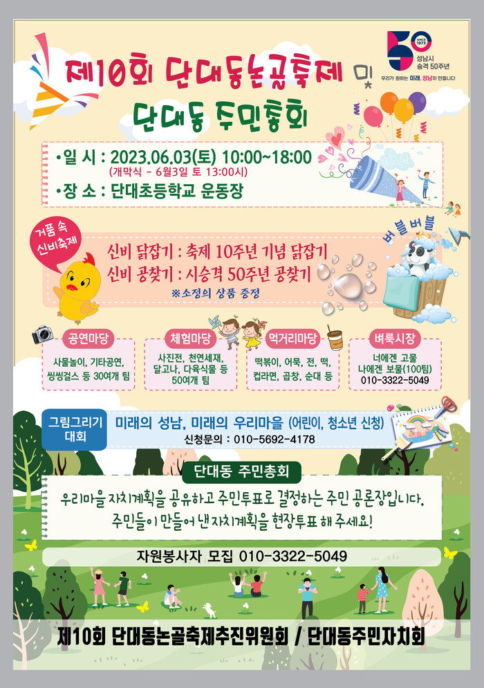 성남시 대표 마을축제인 ‘제10회 단대동 논골축제’가 3일, 수정구 단대동 단대초등학교 운동장에서 열린다.