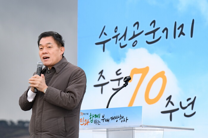 공군 제10전투비행단이 수원 주둔 70주년을 기념해 개최한 수원시민과 함께하는 부대개방행사에 참석한 이재준 수원시장이 “국가와 지역사회를 위해 헌신한 공군 제10전투비행단에 감사드린다”고 말했다.
