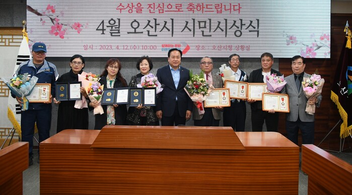 오산시(시장 이권재)는 지난 12일 지역사회에 헌신하고 노력한 시민들에게 감사한 마음을 전하는 시민시상식을 개최했다.