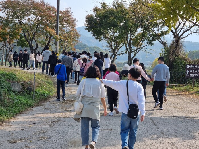 이번 여행에 참가한 발달장애인과 보호자 등 120여명은 수원역에서 아산역까지 기차로 이동해 현충사, 신정호, 생태곤충원, 외암민속마을 등을 둘러보며 가을을 만끽했다.