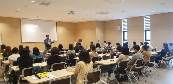 사진/드로잉 에세이 함께 쓰기 강연 모습.(사진제공=수원시)