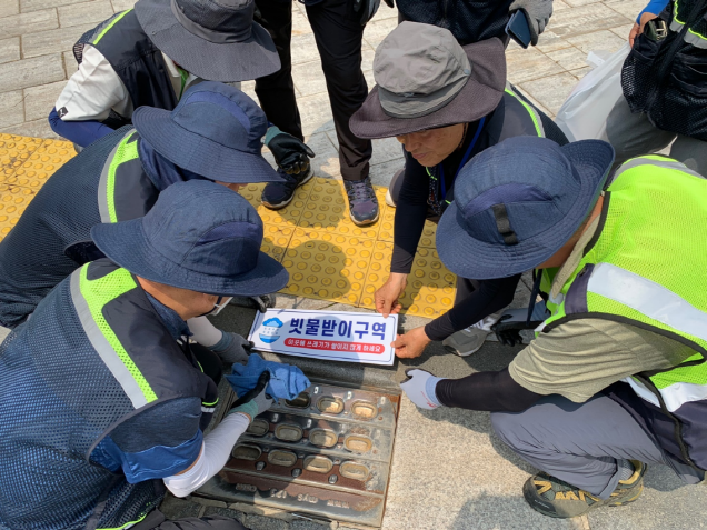 행궁동 경기행복마을관리소는 행궁동 일대 빗물받이 54개소를 정비하고 빗물받이 구역을 알리는 ‘쓰레기 투척 예방 스티커’를 부착했다.