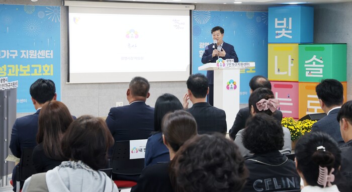 광명시(시장 박승원)는 11일 15시 하안종합사회복지관 대강당에서 광명시 1인가구지원센터 개관 1주년 성과보고회를 개최하고, 지난 1년간 센터 운영을 통해 정립한 지원 체계를 바탕으로 앞으로 1인가구에 대한 맞춤형 서비스를 더욱 강화할 방침이라고 밝혔다.