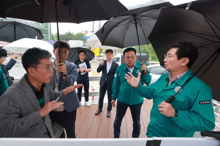 이날 현장점검은 지난 21일 이 시장이 내린 특별지시 3호의 후속 조치 차원에서 이뤄졌다. 이 시장은 지난 21일 장마 전선 북상과 태풍에 대비해 침수 가능성이 있거나 지대가 낮은 도로변 등 재난 취역 지역을 수시로 점검하고, 폭염에도 대비하라는 내용의 특별지시 3호를 내린 바 있다.