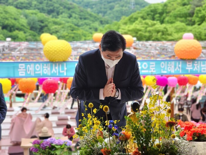 이와 관련해 김상돈 예비후보는 이날 자신의 페이스북을 통해 부처님 오신 날을 맞아 우리 의왕시에 소재한 청계사, 백운사 및 용화사 봉축법요식에 참석했다며, 부처님의 자비와 화합의 가르침이 우리 의왕은 물론 온 세상에 널리 퍼지길 기원했다고 밝혔다.