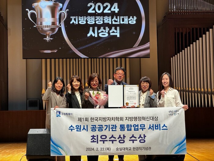 수원시 관계자는 “제1회 한국지방자치학회 지방행정혁신대상에서 최우수상을 받게 돼 기쁘다”며 “디지털 기반 서비스 혁신에 수원시가 선도적 역할을 할 수 있도록 더 노력하겠다”고 말했다.