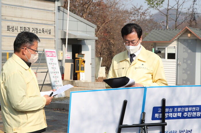정명근 화성시장은 24일 관내 AI(조류인플루엔자)거점소독시설을 방문해 방역진행 상황을 점검하고 AI 확산 차단에 총력을 다 해 줄 것을 당부했다.