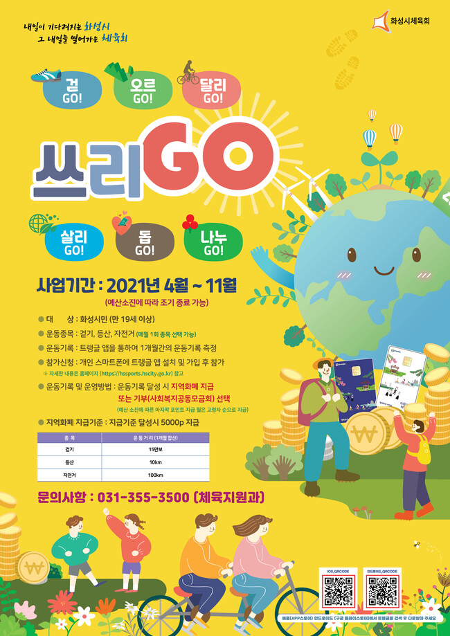 이산화탄소를 줄이고 지속가능한 도시를 만드는 ‘화성형 그린뉴딜’을 추진 중인 화성시가 화성시체육회와 손잡고 시민 누구나 참여 가능한 ‘그린헬스포인트 쓰리GO’를 지자체 최초로 도입했다.