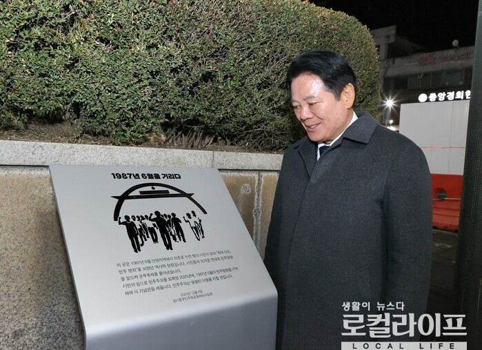 이어 “표지석은 단순한 기념물이 아니다. 민주주의를 만들어 온 시민들을 기억하고 그 정신을 미래 세대에게 전하는 이정표이다”라며 “‘본립도생(本立道生)’ 기본이 바로 설 때 나아갈 길이 보인다는 말처럼 민주주의가 굳건할 때 우리는 더 나은 내일로 나아갈 수 있다”고 강조했다.