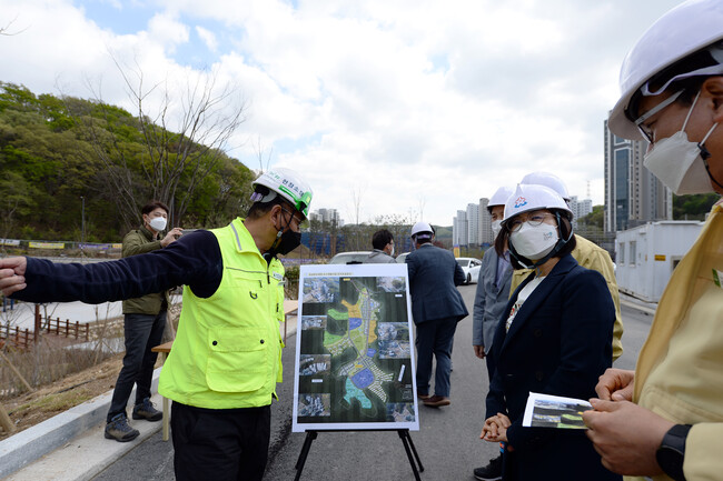 사진/은수미 성남시장, 4월 13일 오후 분당구 대장동 210번지 일원 친환경 주거단지 조성사업 현장을 찾았다.(사진제공=성남시)