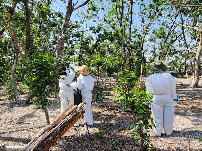 주요 조사내용은 ▲민물가마우지 영소목(둥지목)과 둥지 수, 기타 서식조류 ▲인공섬 주 목본(木本)류인 아까시나무 생육상태, 식물상 ▲민물가마우지 배설물로 인한 백화현상에 따른 식생변화 여부 ▲생태교란 야생식물 분포도, 인공섬 천이(遷移) 상태 변화 등이었다.