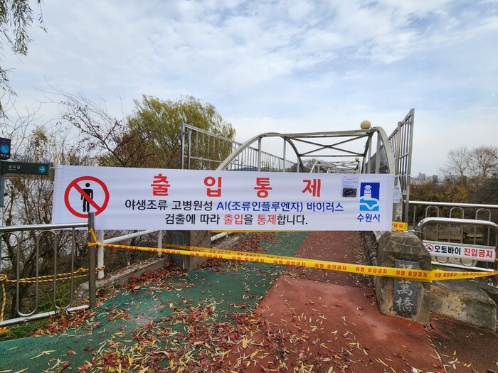 수원시 관계자는 “AI 확산 방지를 위한 출입 통제 조치에 시민들께서 적극적으로 협조해주시길 바란다”며 “저수지나 하천 주변을 산책할 때 철새에 직접적인 접촉을 피하고, 분변·깃털을 밟지 않도록 주의해 달라”고 당부했다.