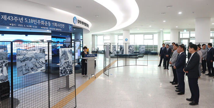 경기도의회 교섭단체 더불어민주당(대표의원 남종섭, 용인3)는 5·18 민주화운동 43주년을 앞두고 16일(화) 경기도청 1층 로비에서 “제43주년 5·18 민주화운동 기획사진전” 개막식을 개최했다.
