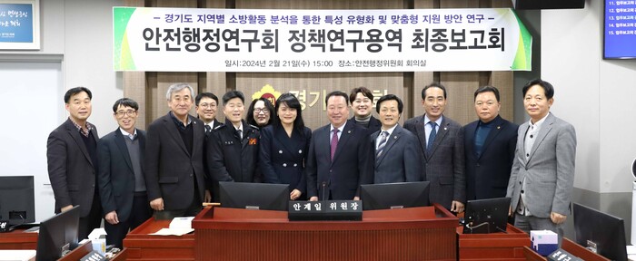 경기도의회 안전행정연구회(회장 안계일 안전행정위원장)는 21일(수) 「경기도 지역별 소방활동 분석을 통한 특성 유형화 및 맞춤형 지원 방안 연구」 용역 최종보고회를 개최했다.
